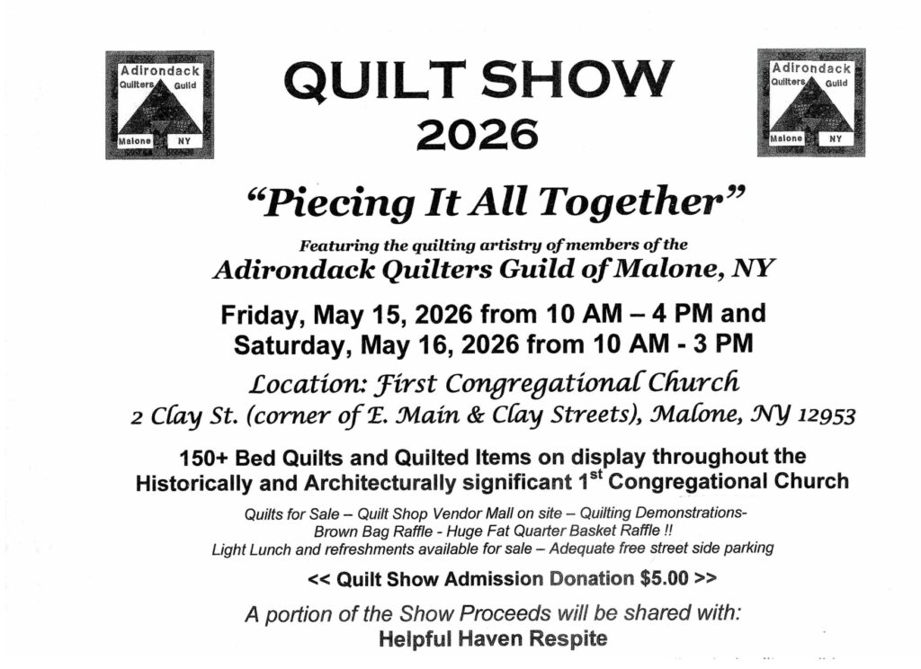 The Adirondack Quilters Guild is based in Malone, New York and serves the surrounding communities.